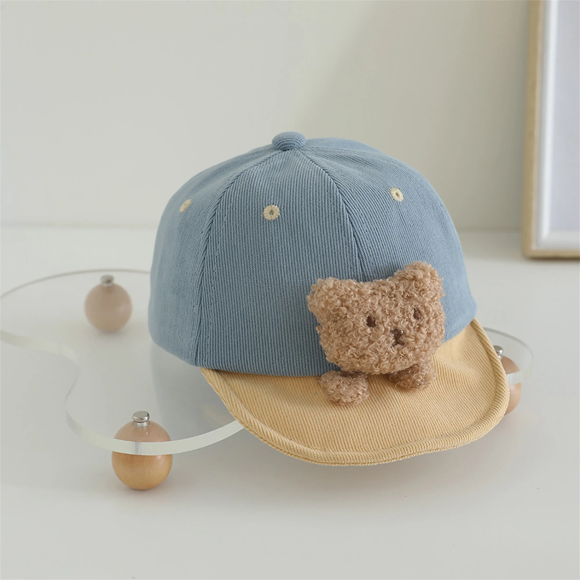 Kids Baseball Caps Fashion 3D Plush Bear Doll Trucker Hats Adjustable Toddler Caps for Boys Girls