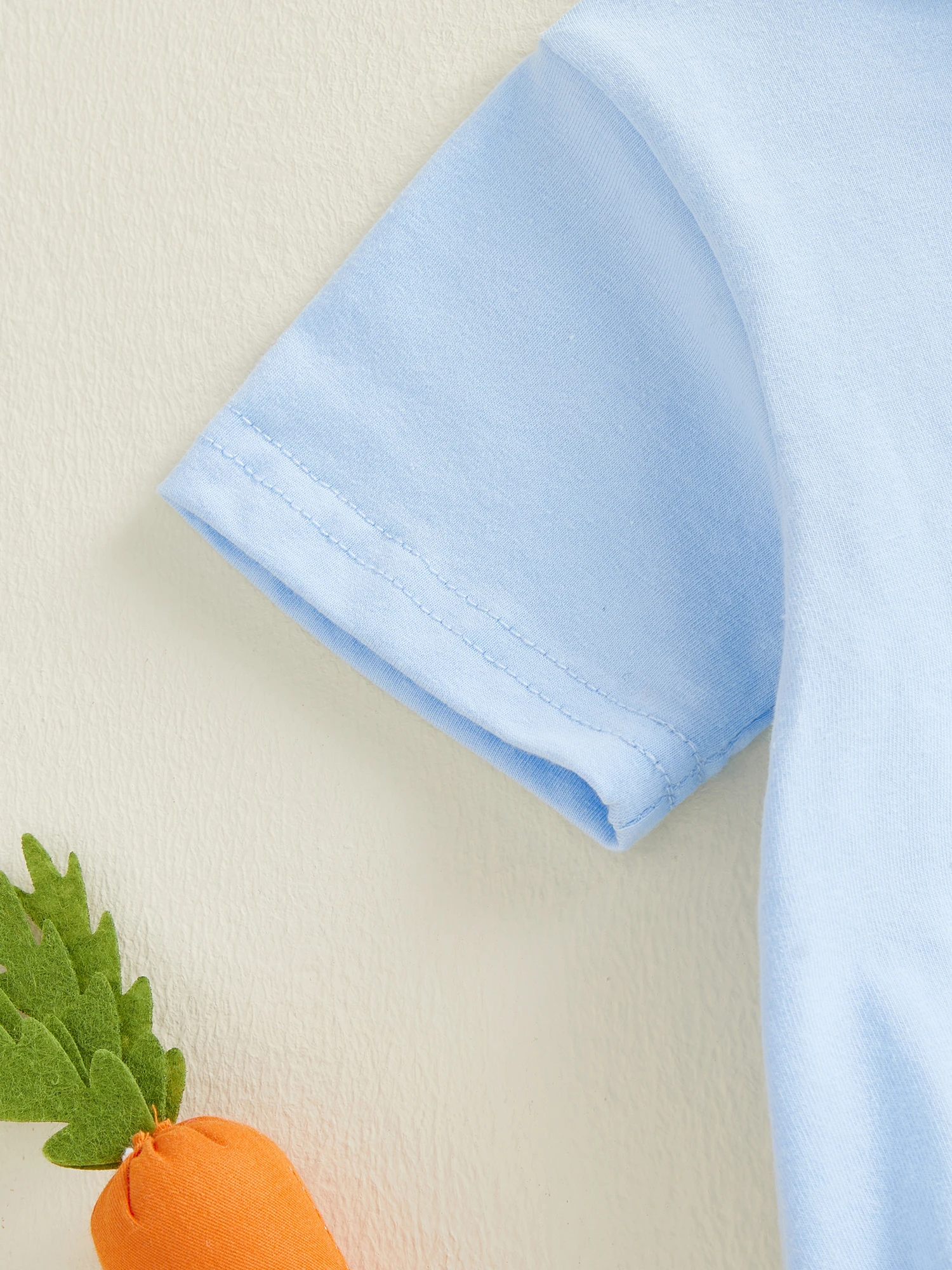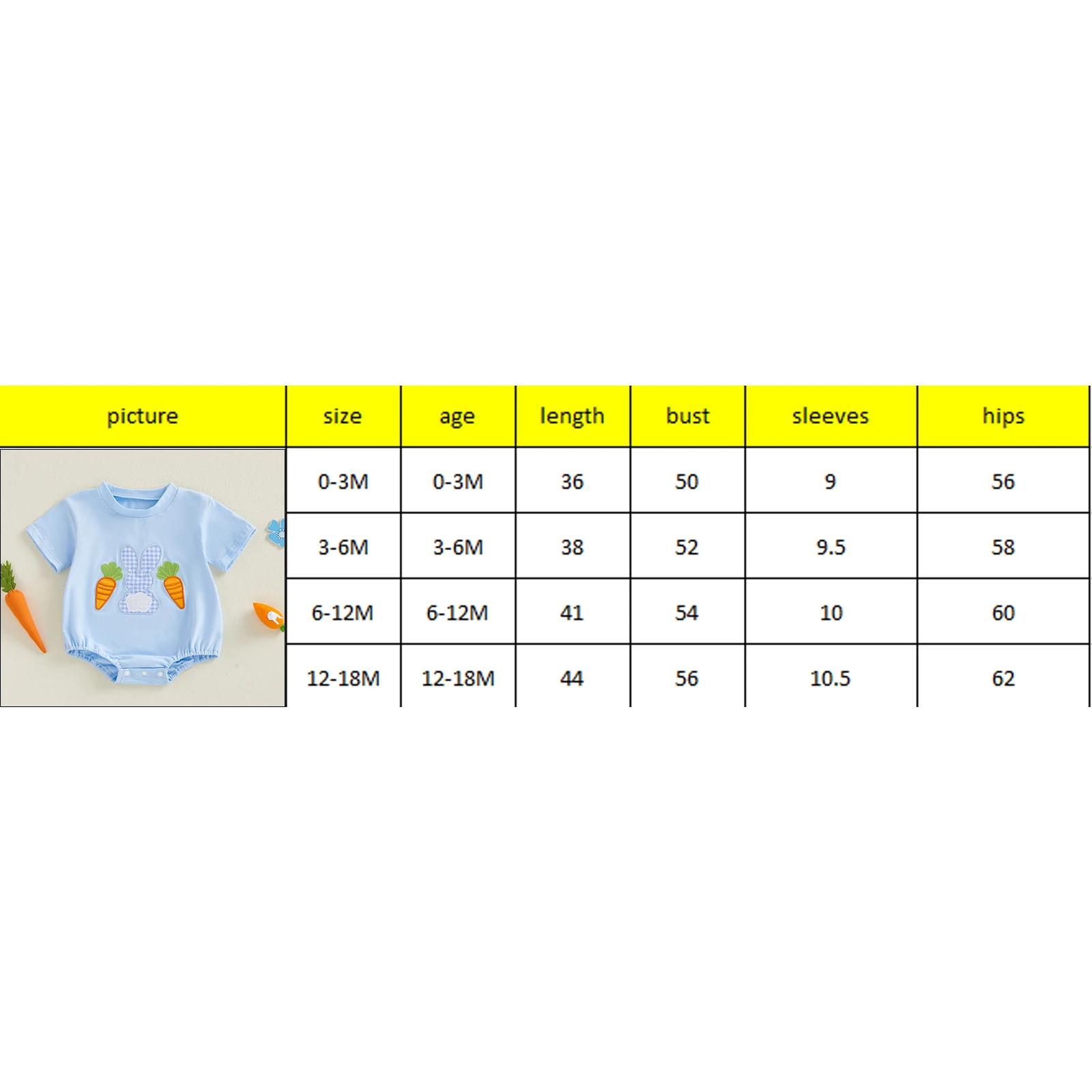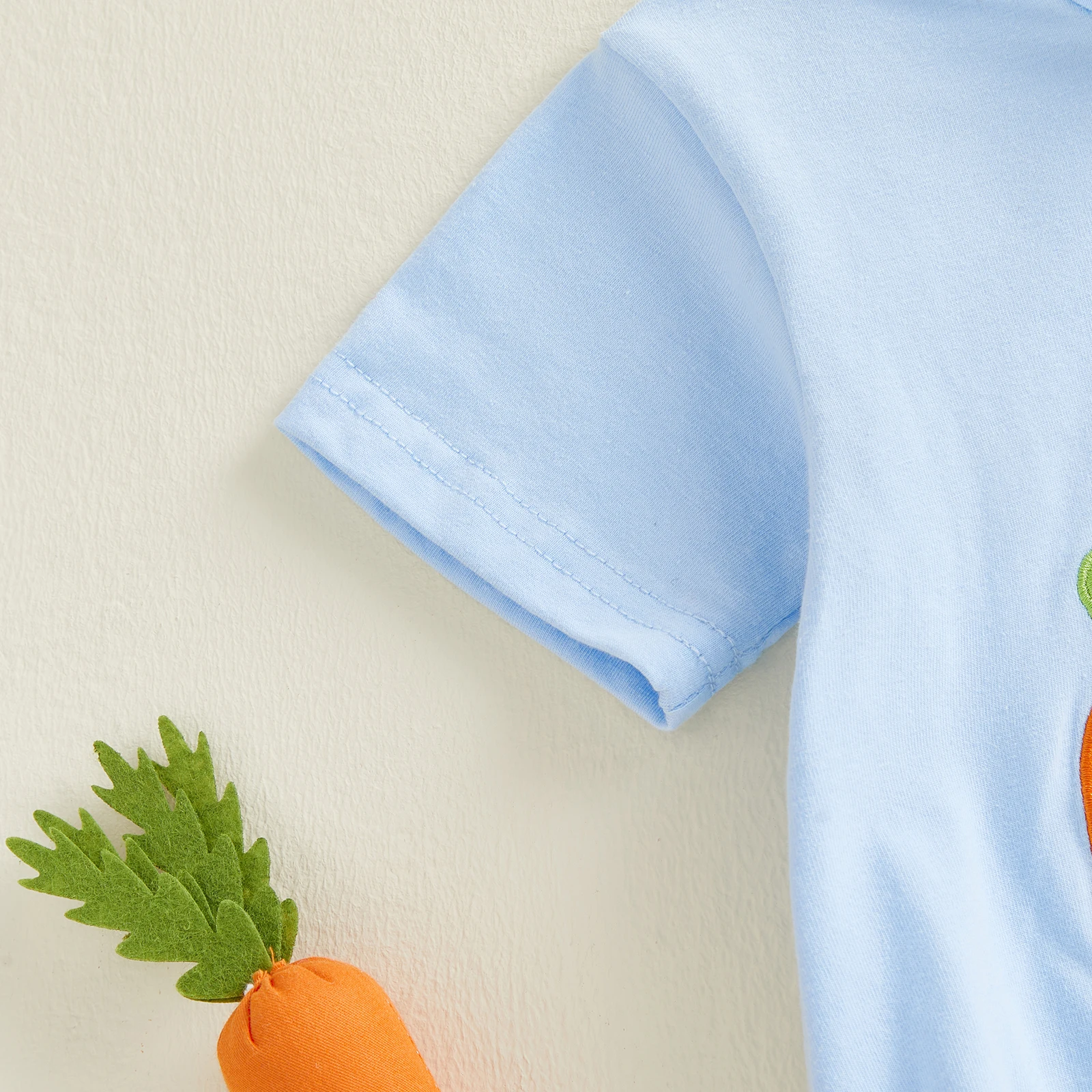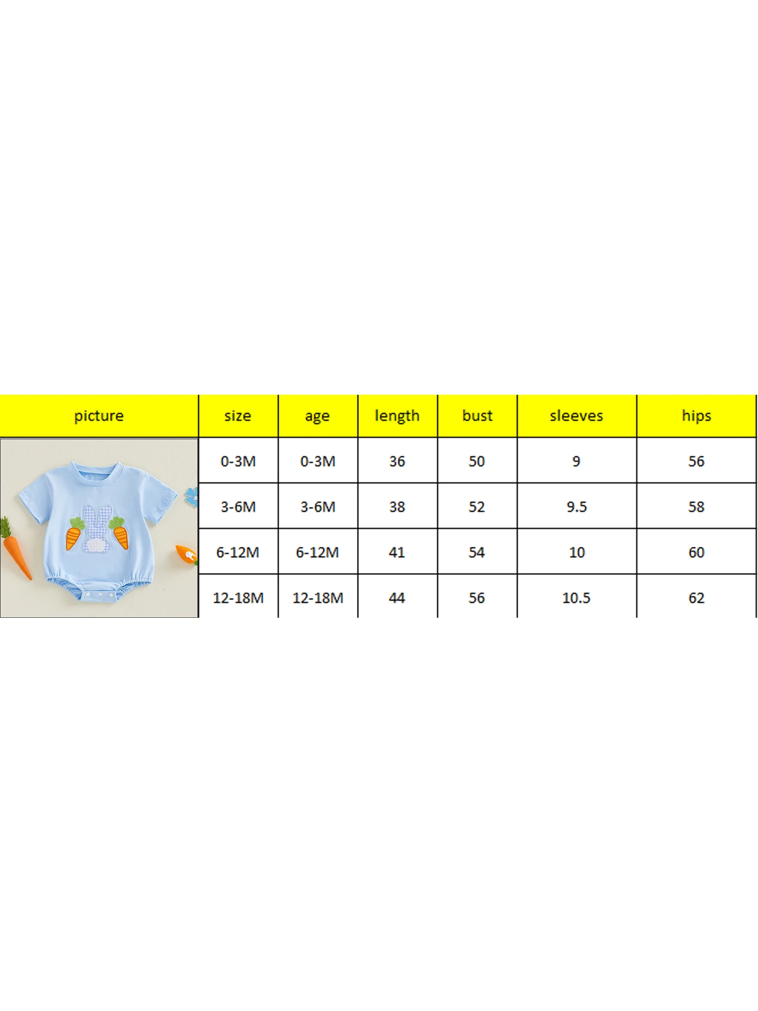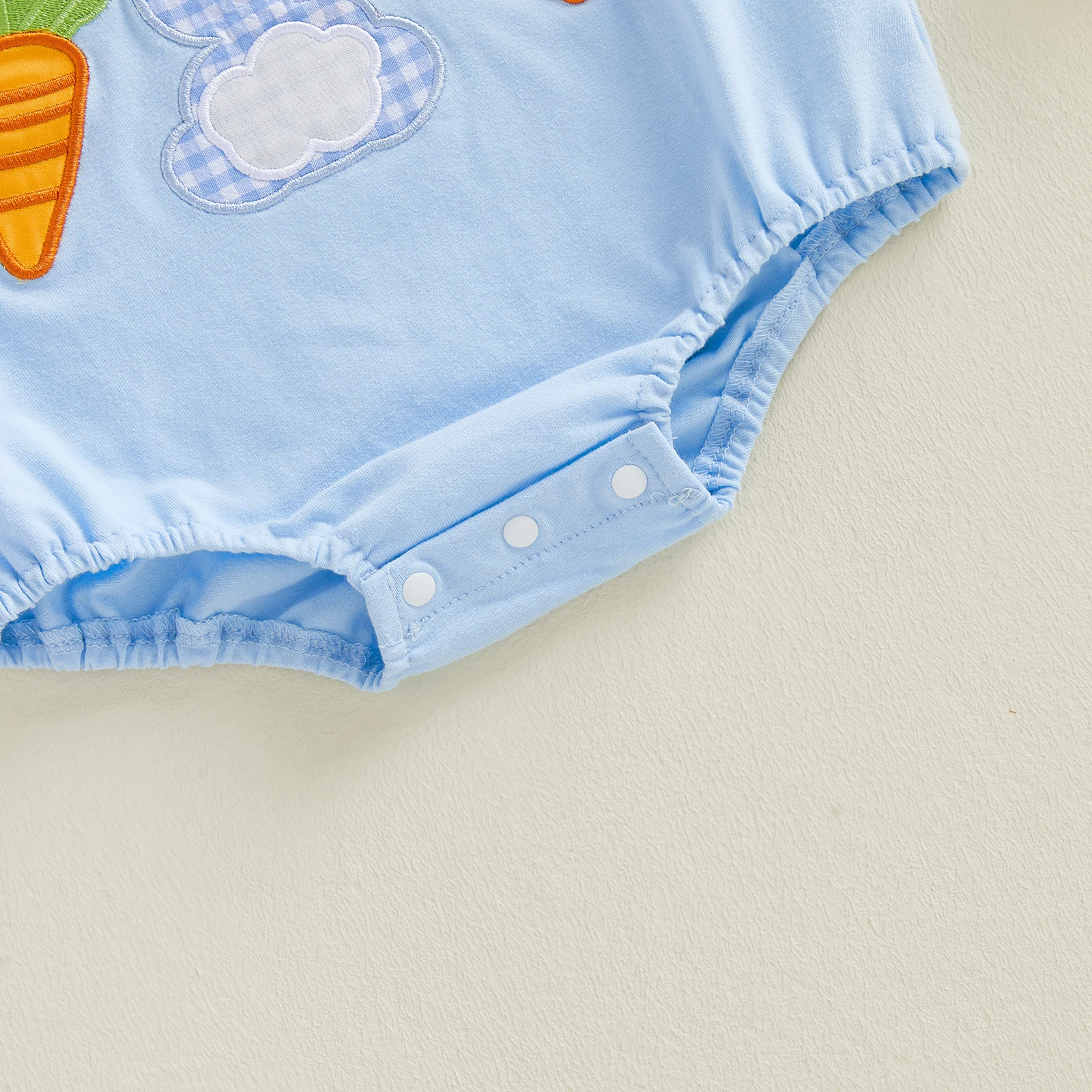 Baby Easter Romper Bunny Carrot Embroidered Crew Neck Short Sleeve Newborn Jumpsuit