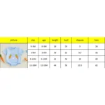 0-3M Length: 14.2 Bust: 19.7 Sleeve: 3.5 Hip: 22.0 Advised Age: 0-3 Months