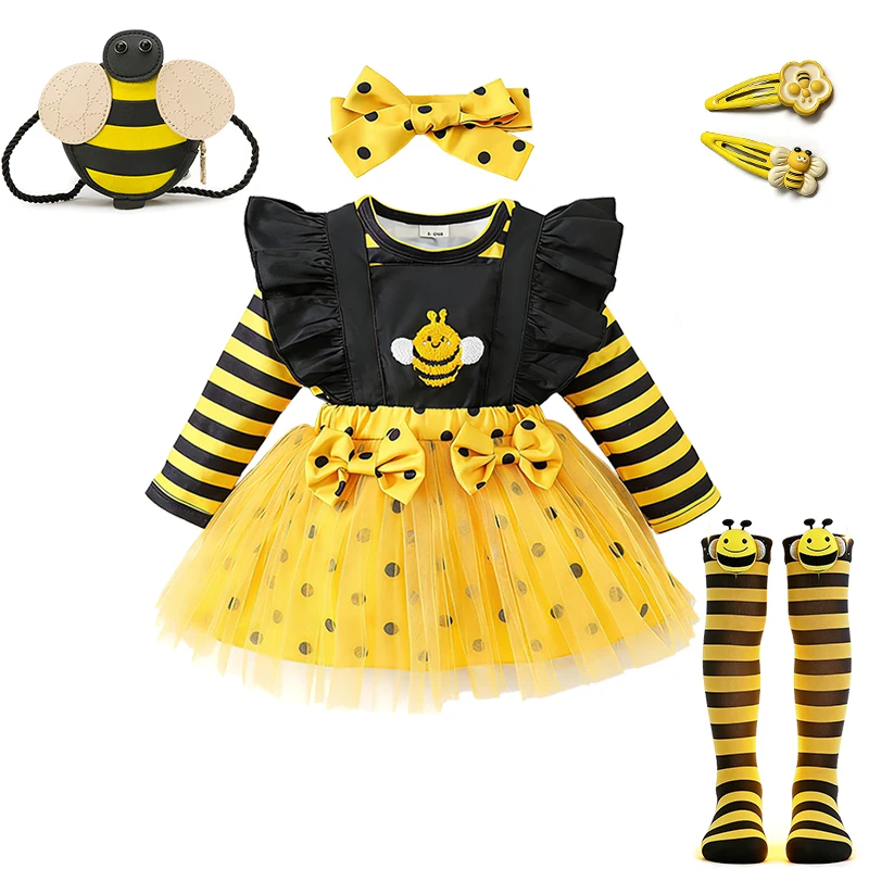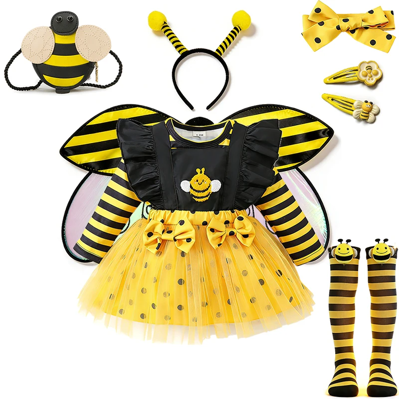 Fancy Animals Theme Party Festival Baby Girls Little Bee Cosplay Costume Romper & Dress