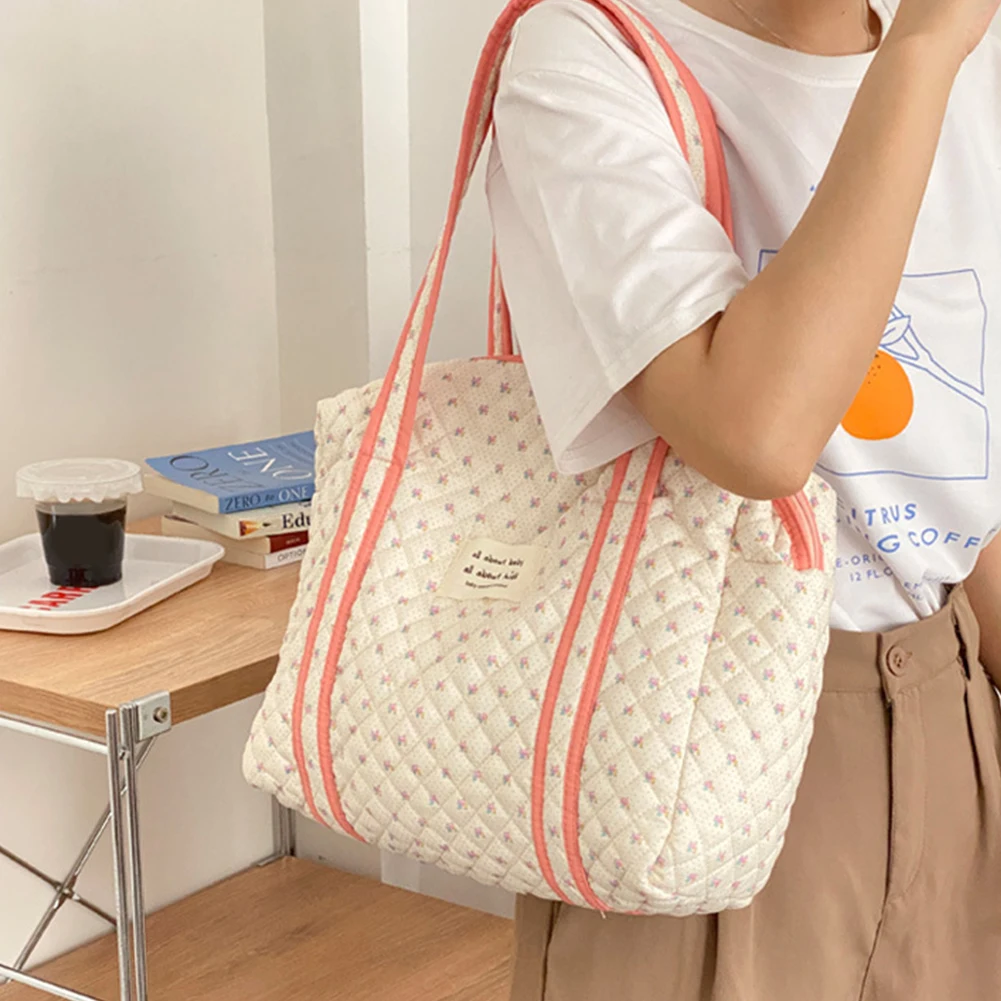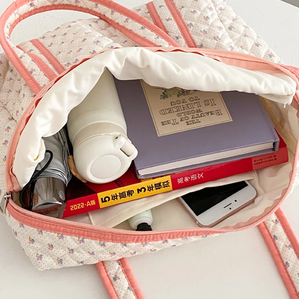 Cartoon Pattern Top-handle Bag Quilted Cotton Ladies Handbags Printing Soft Large Capacity Fashion Portable for Weekend Vacation