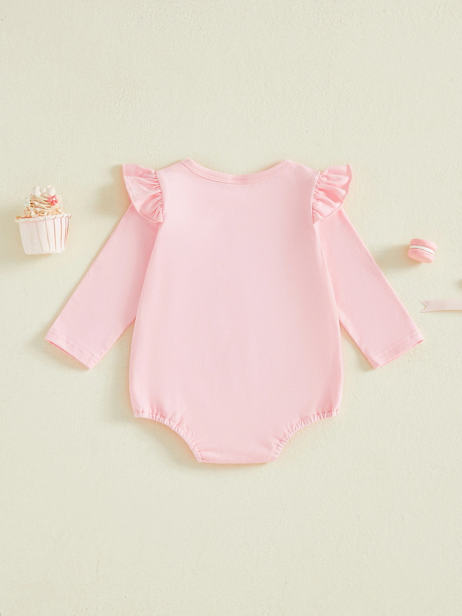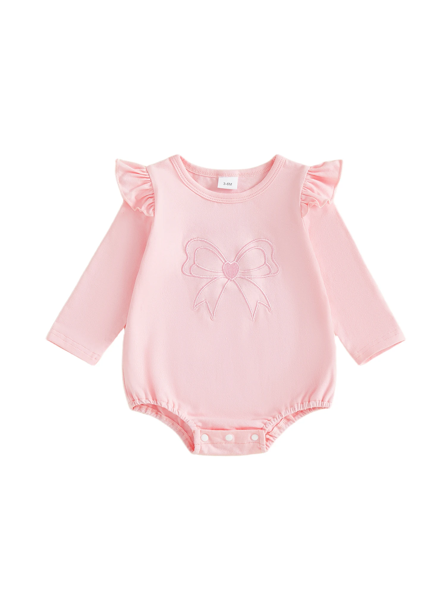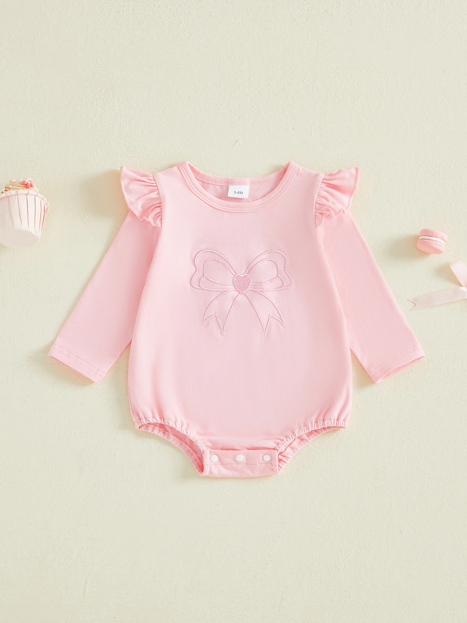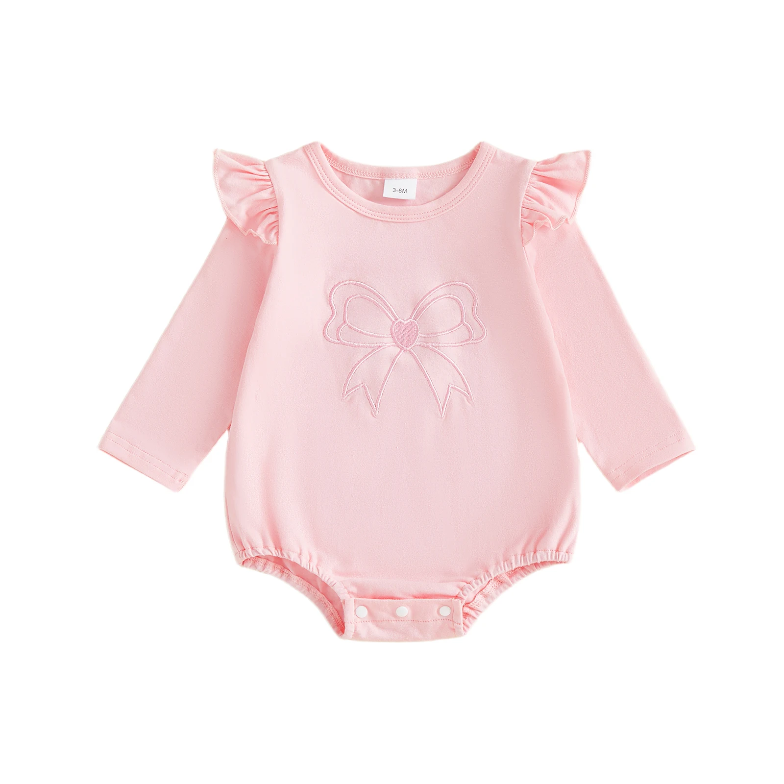 Baby Girl Romper Long Sleeve Crew Neck Bow Embroidery Ruffle Bodysuit Fall Outfit