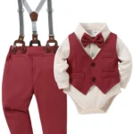Beautiful design: Baby boy outfit is designed for little gentleman, dress shirt with bow-tie and long pants make for baby boys, solid color/plaid tops with unique pleated design, beret very comfortable for your infant boy.